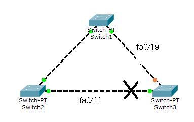 그럼 이제 한번 스위치3의 fa0/22 포트를 다운시키고 fa0/20 포트가 어떻게 변하는지 살펴볼까요?