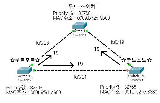위 그림처럼 스위치3에 업링크 패스트를 설정한 후 fa0/22 포트가 다운되면, 차단되어있던 fa0/20 포트가 Forwarding 상태로 바로 바뀌게 됩니다.